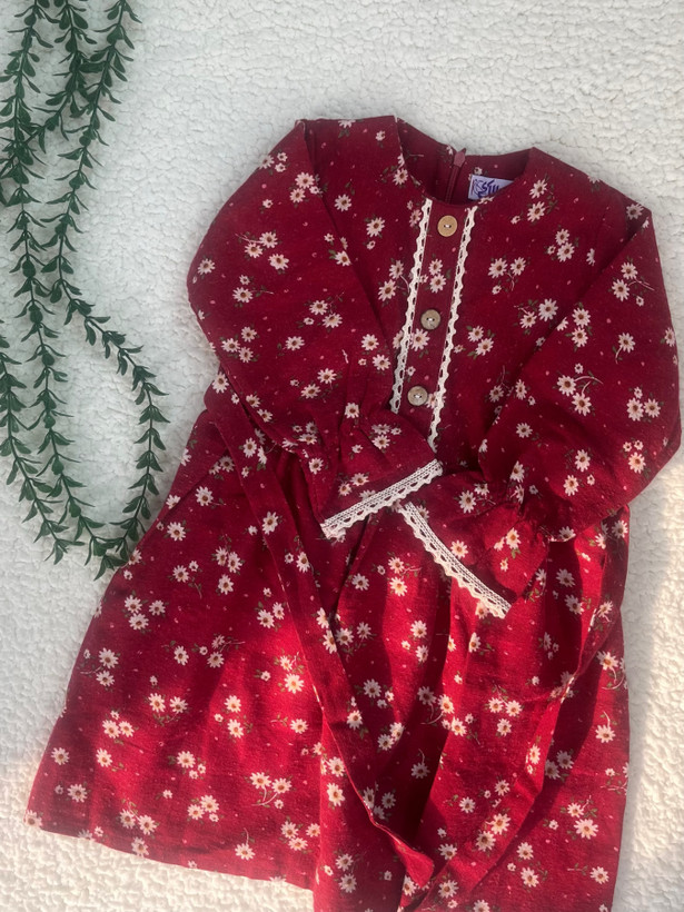 پیراهن دخترانه زرشکی گلدار