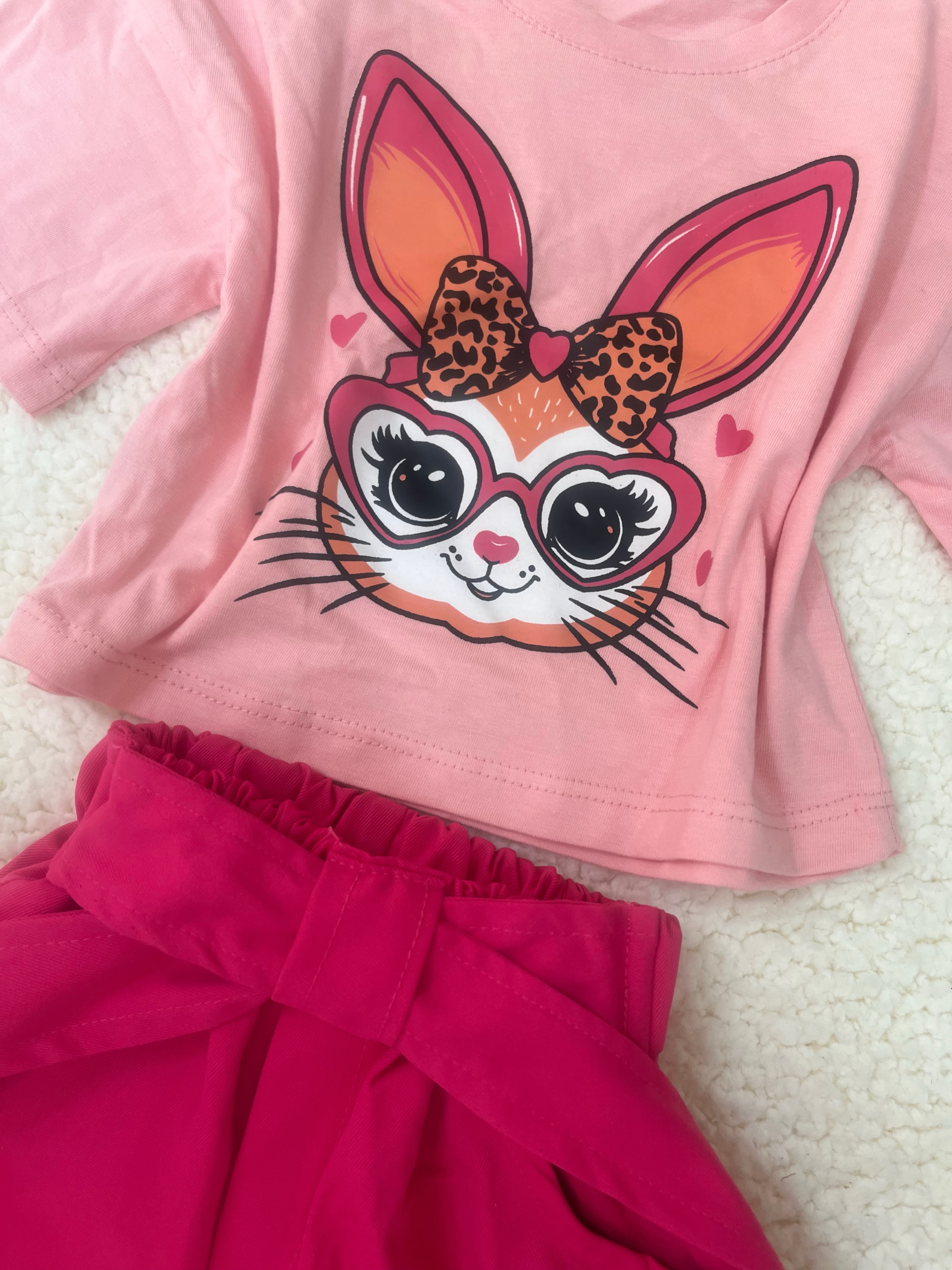 ست دخترونه کراپ شلوارک طرح خرگوش