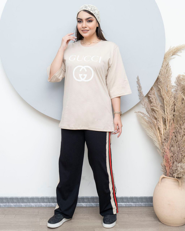 ست تیشرت لانگ و شلوار بگ قواره دار ( مدل گوچی )