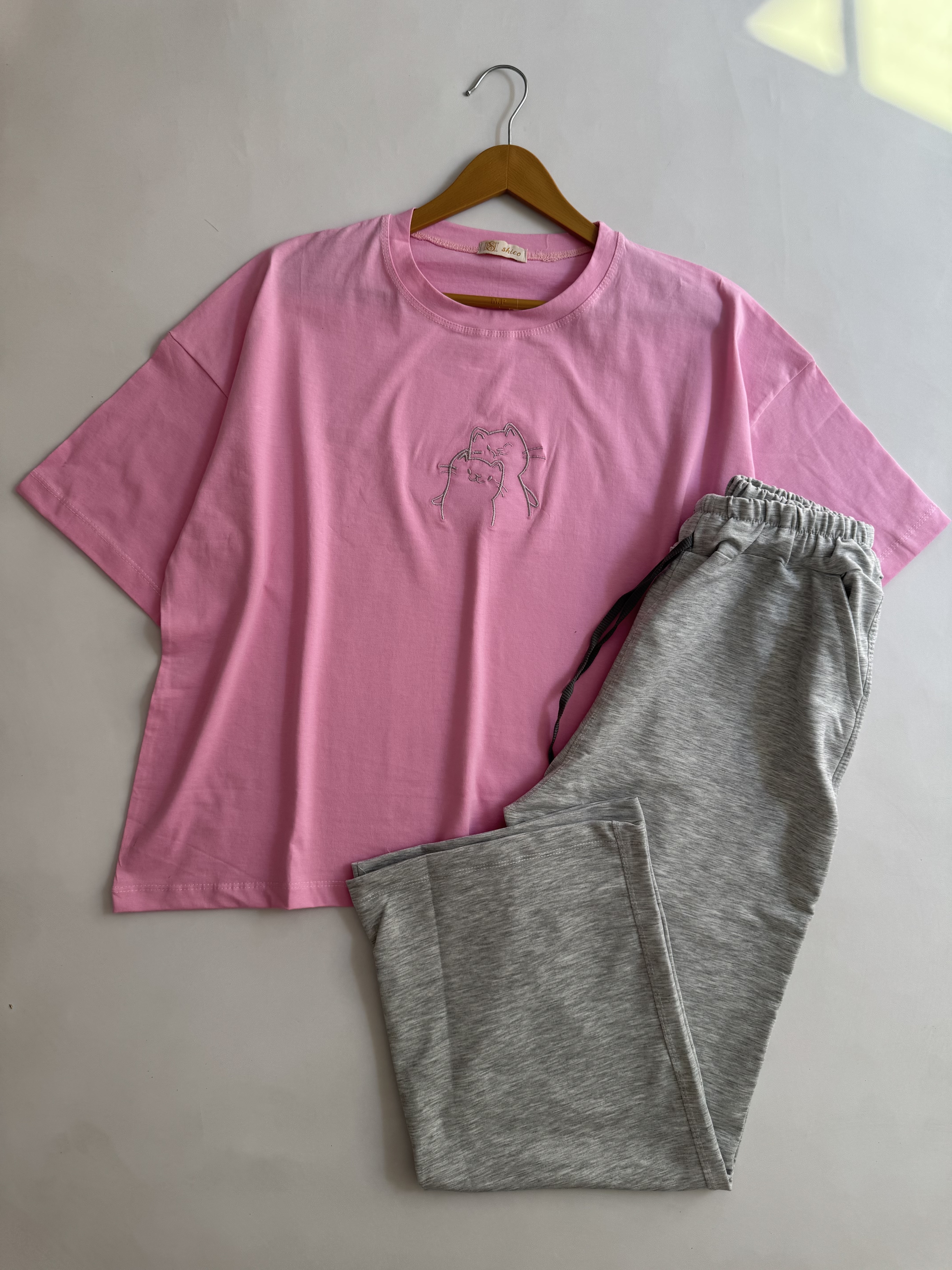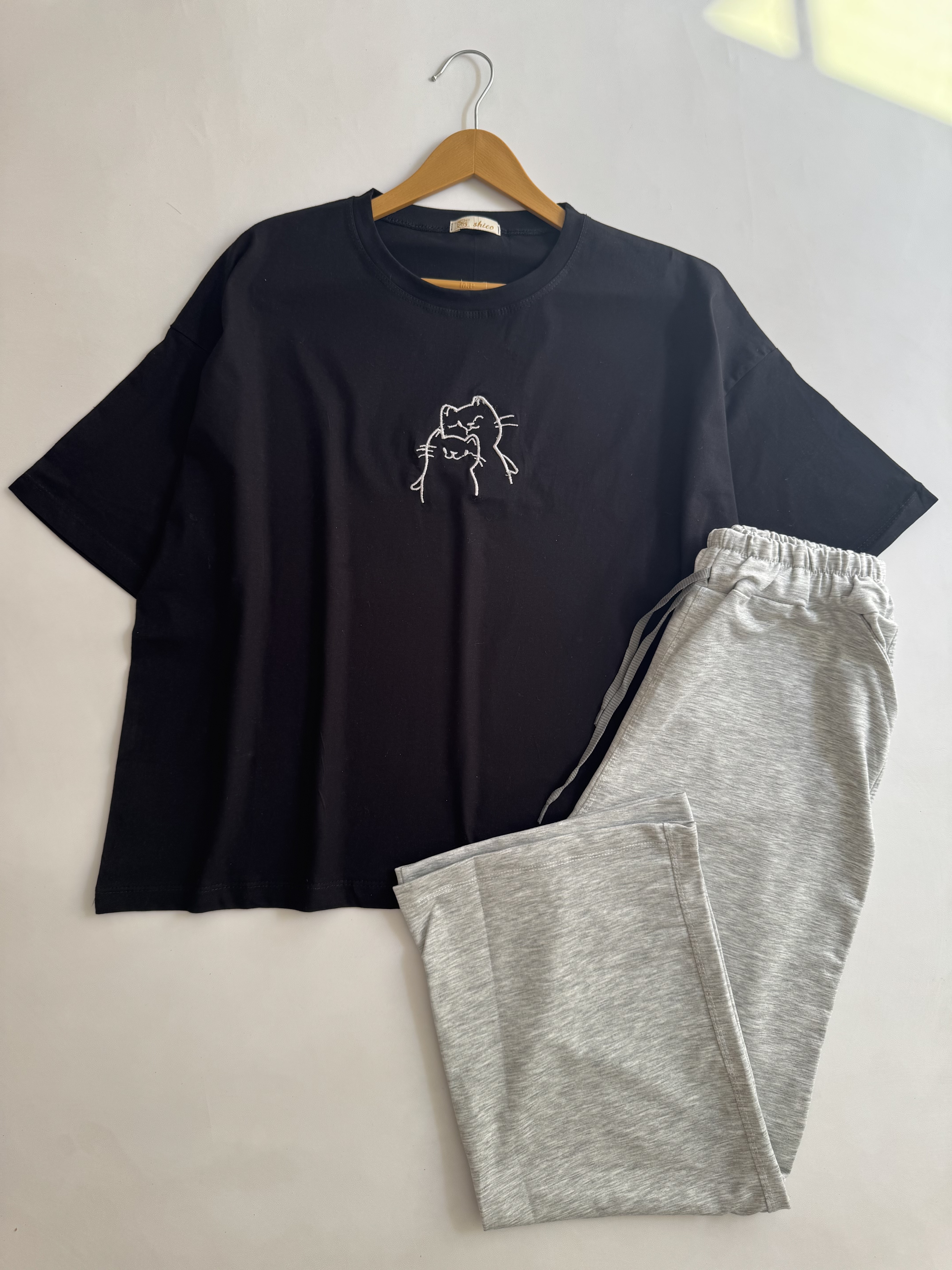 ست تیشرت شلوار باکسی ( ۲ گربه)