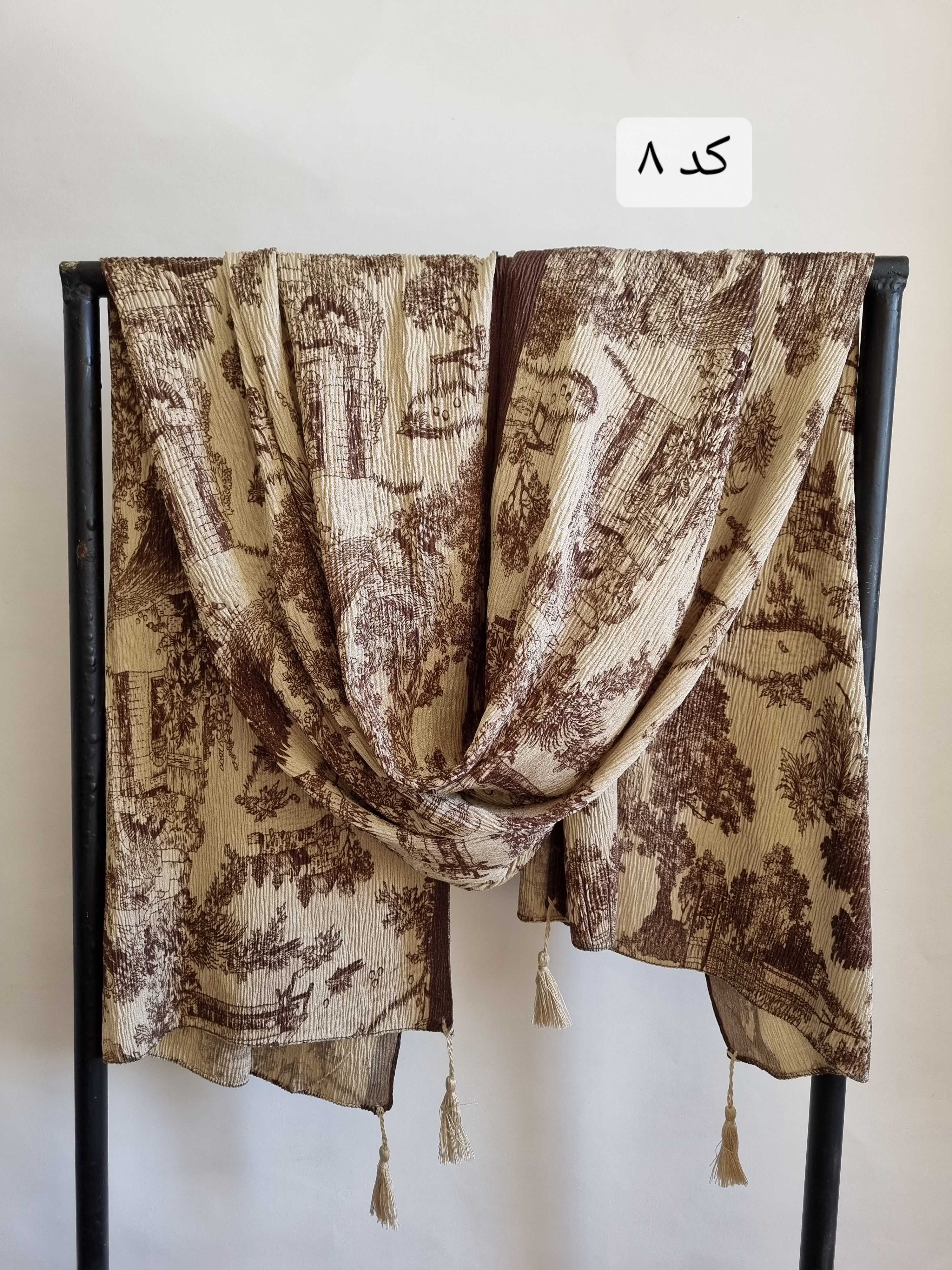 شال پلیسه برشکا نخی چهارفصل قواره ۲ در ۷۰ منگوله دار