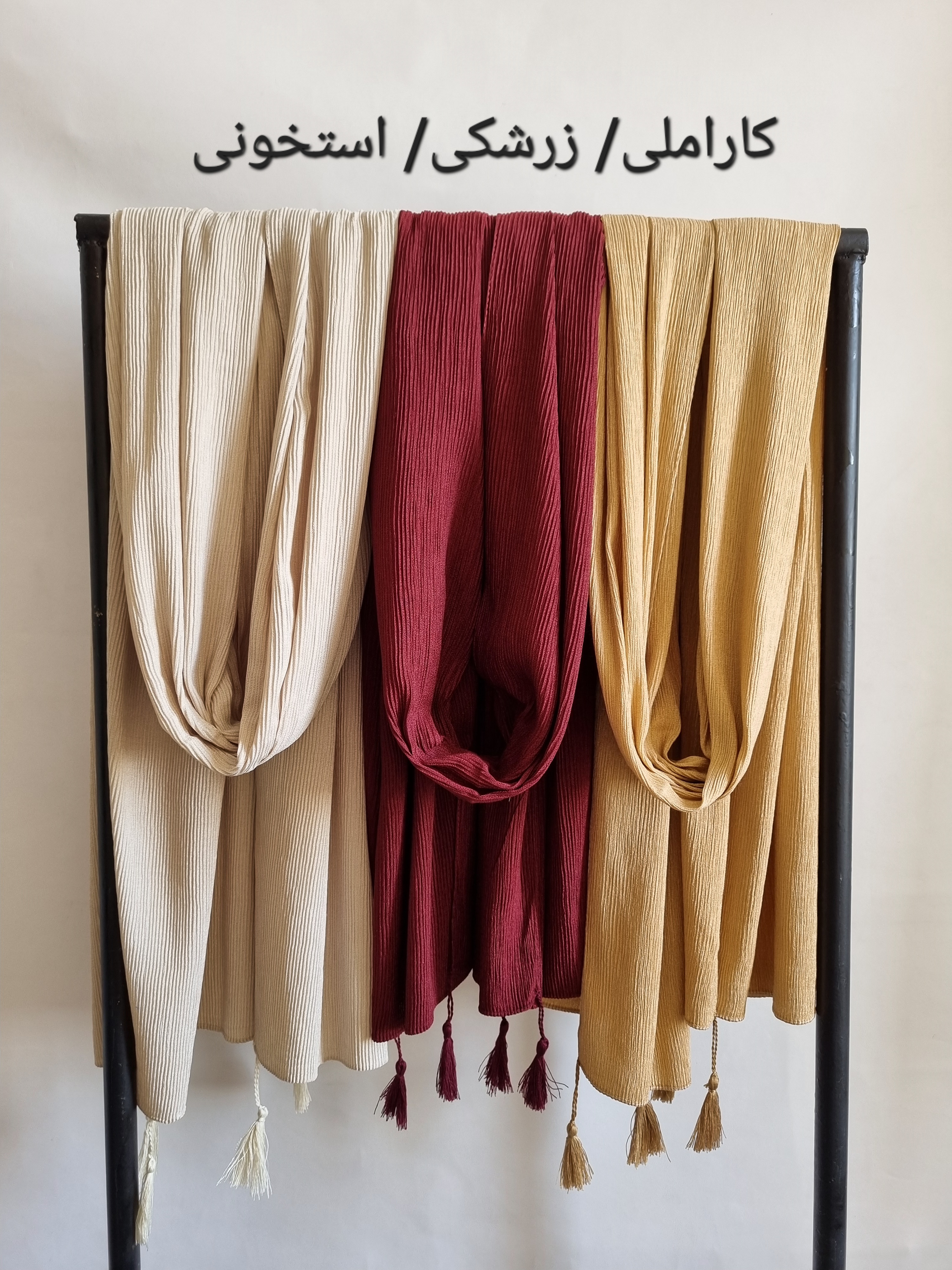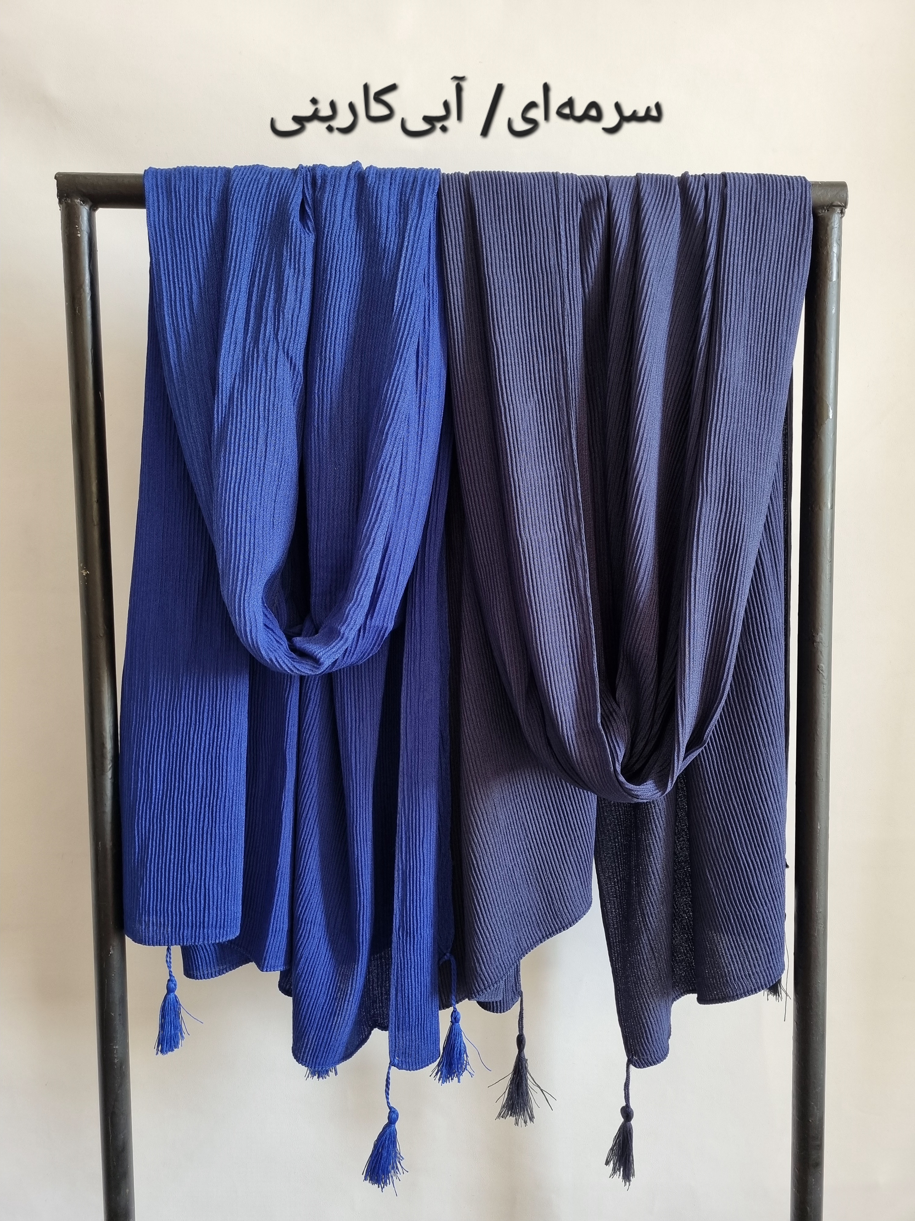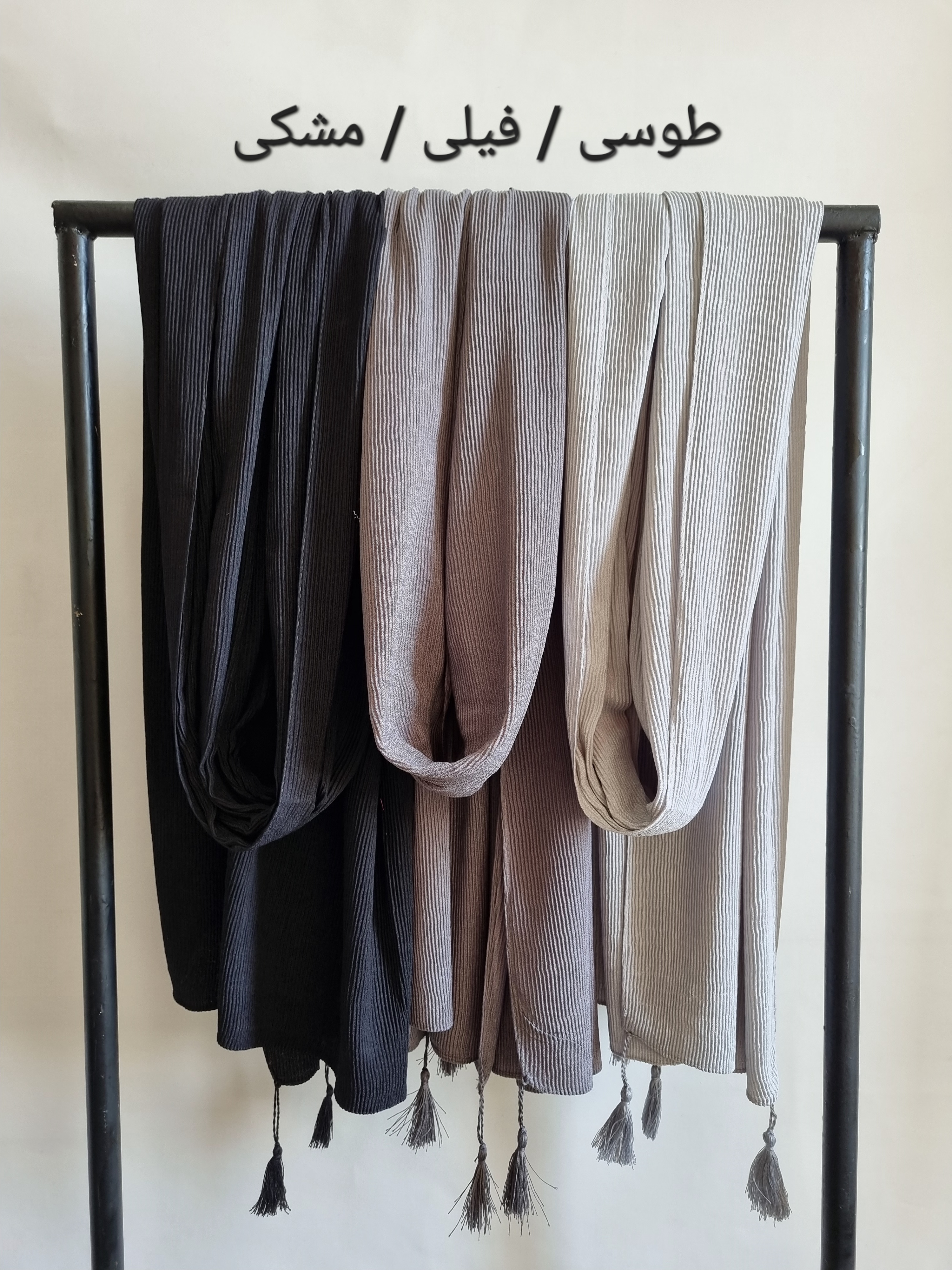 شال پلیسه جنس برشکا سیا اسکارف نخ پنبه چهارفصل