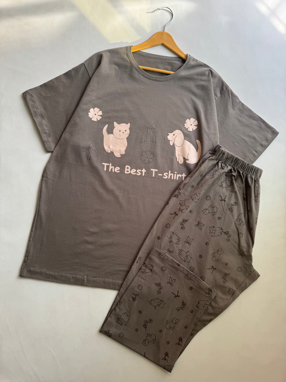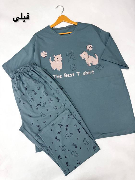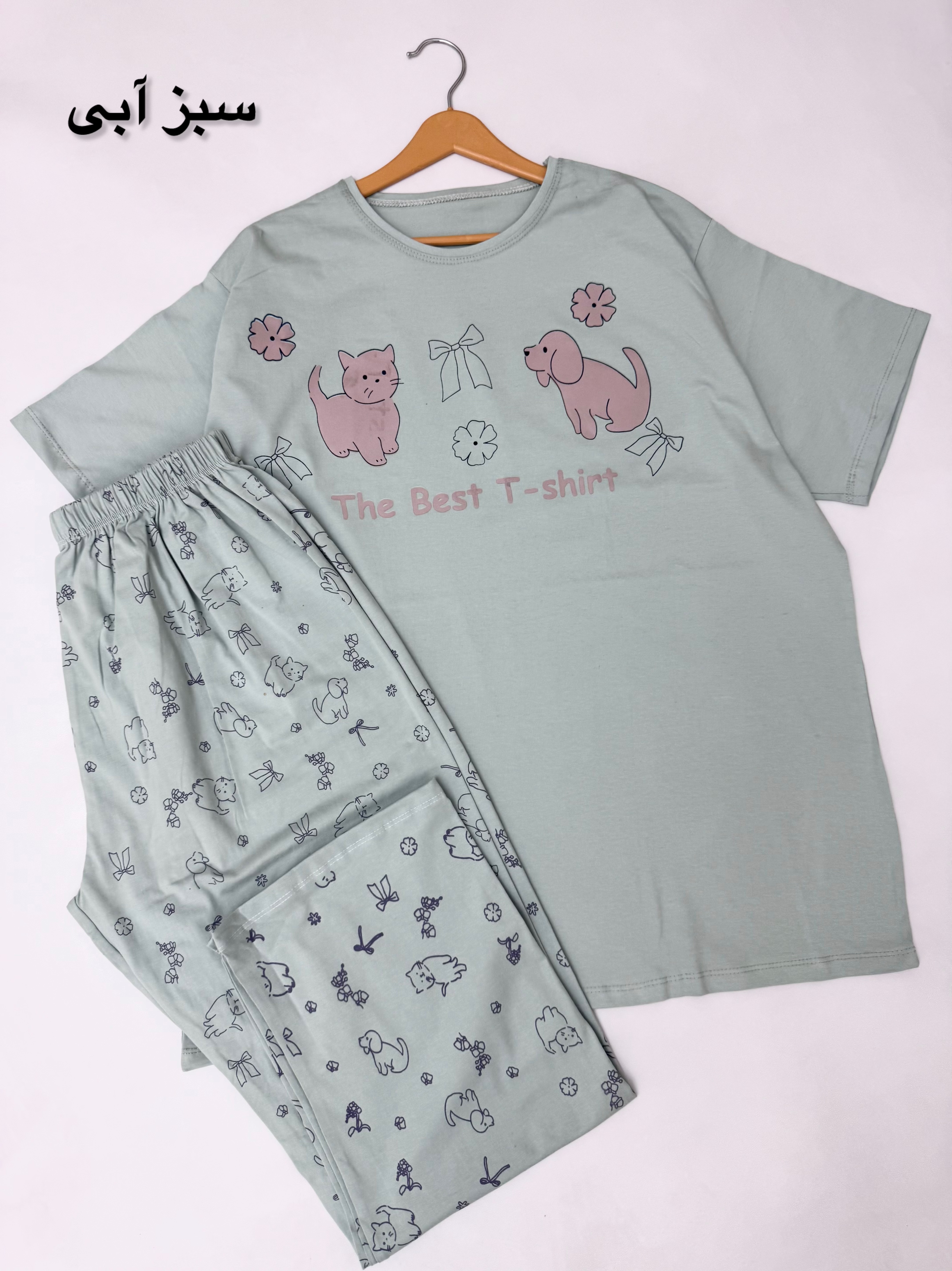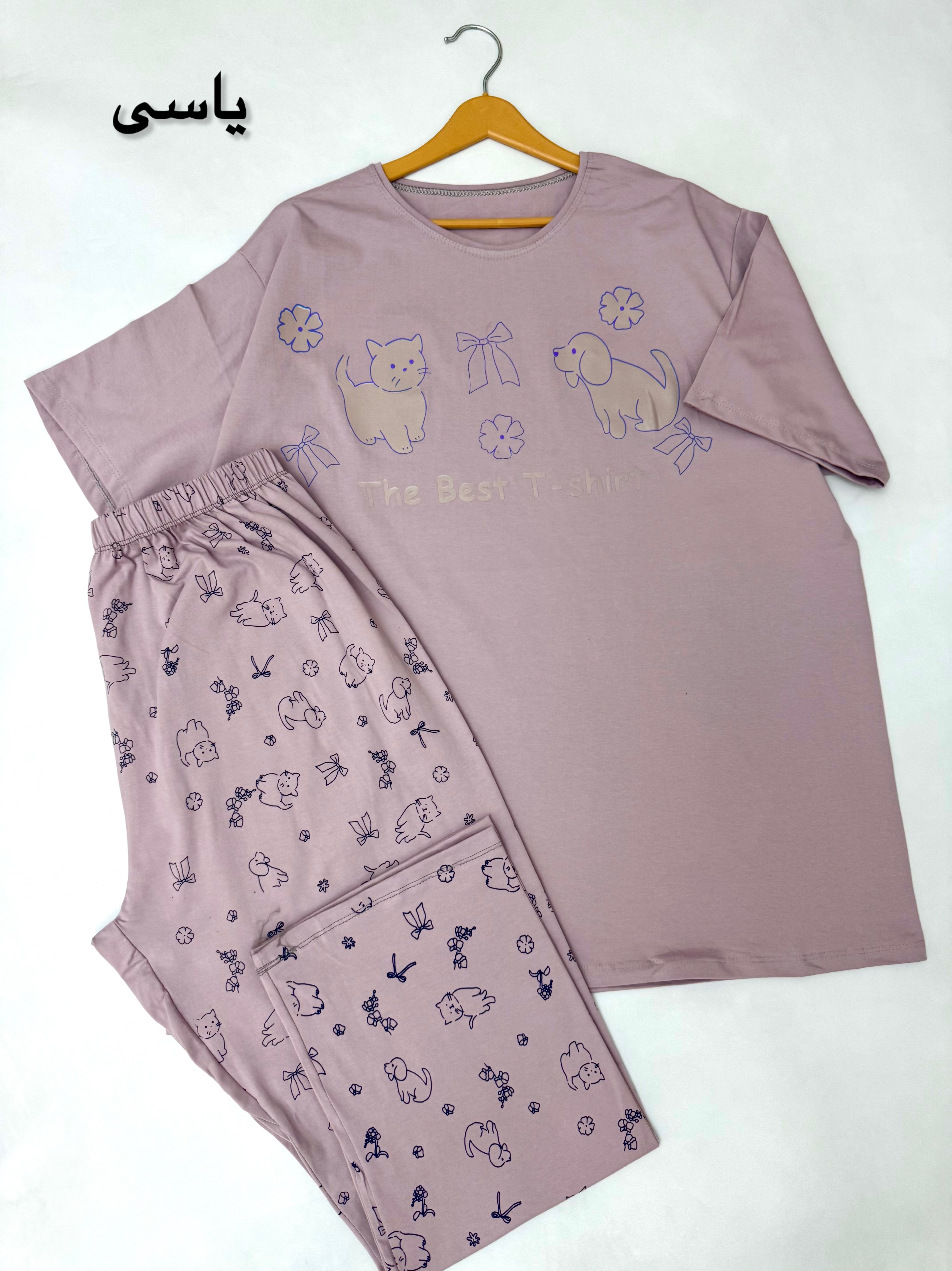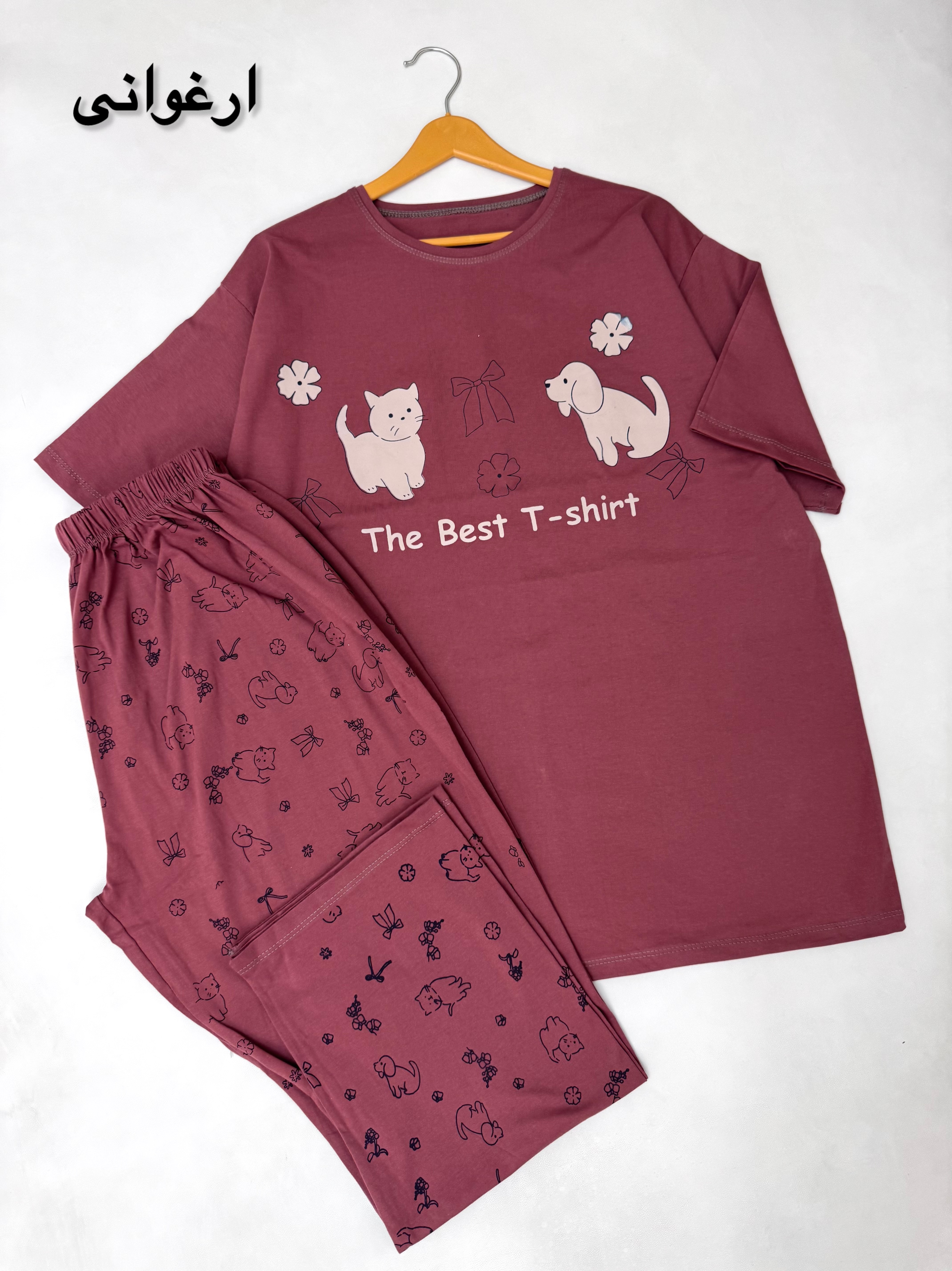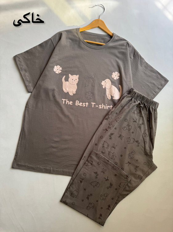 ست تیشرت شلوار سایزبزرگ ( گربه و سگ)
