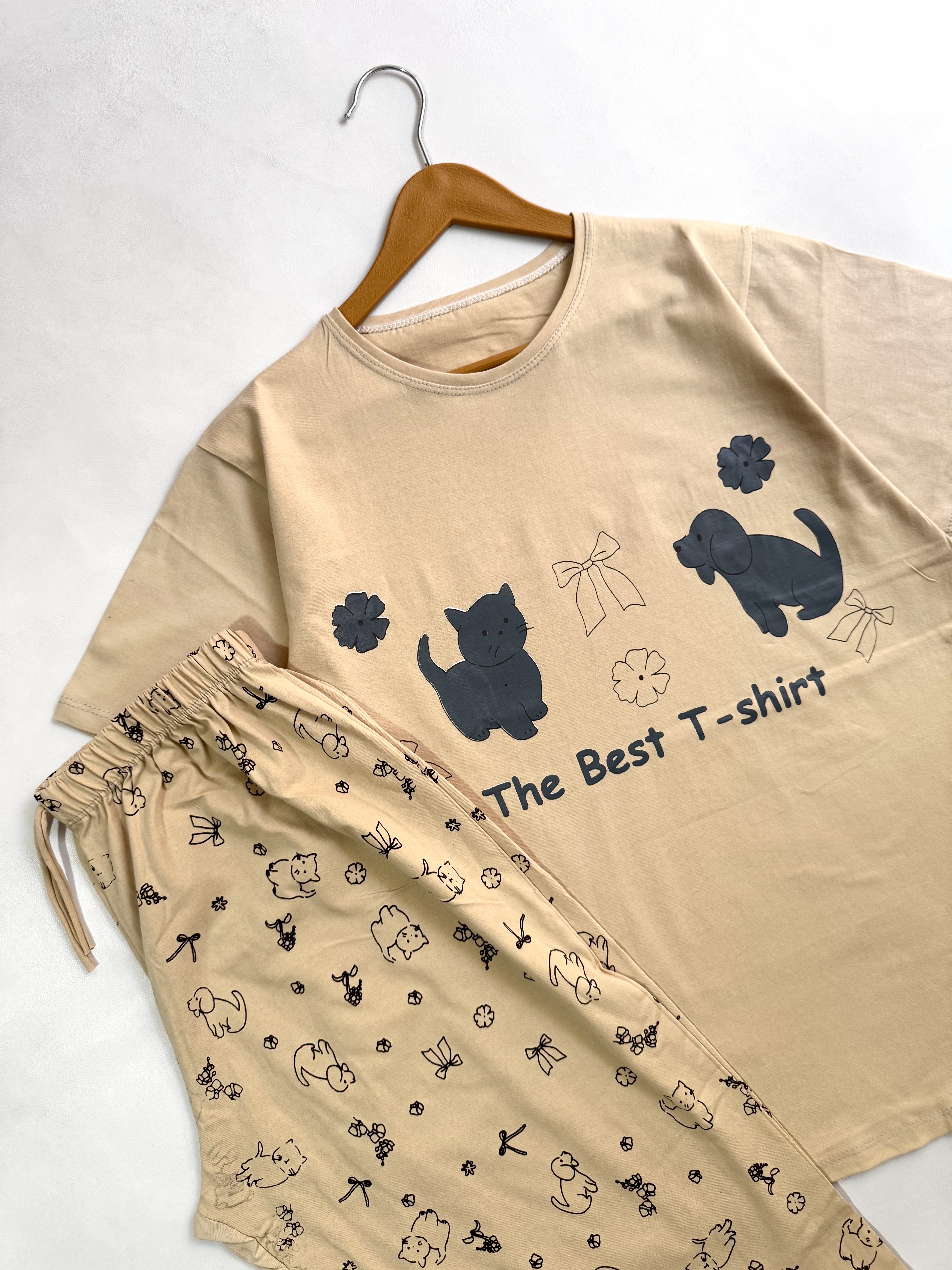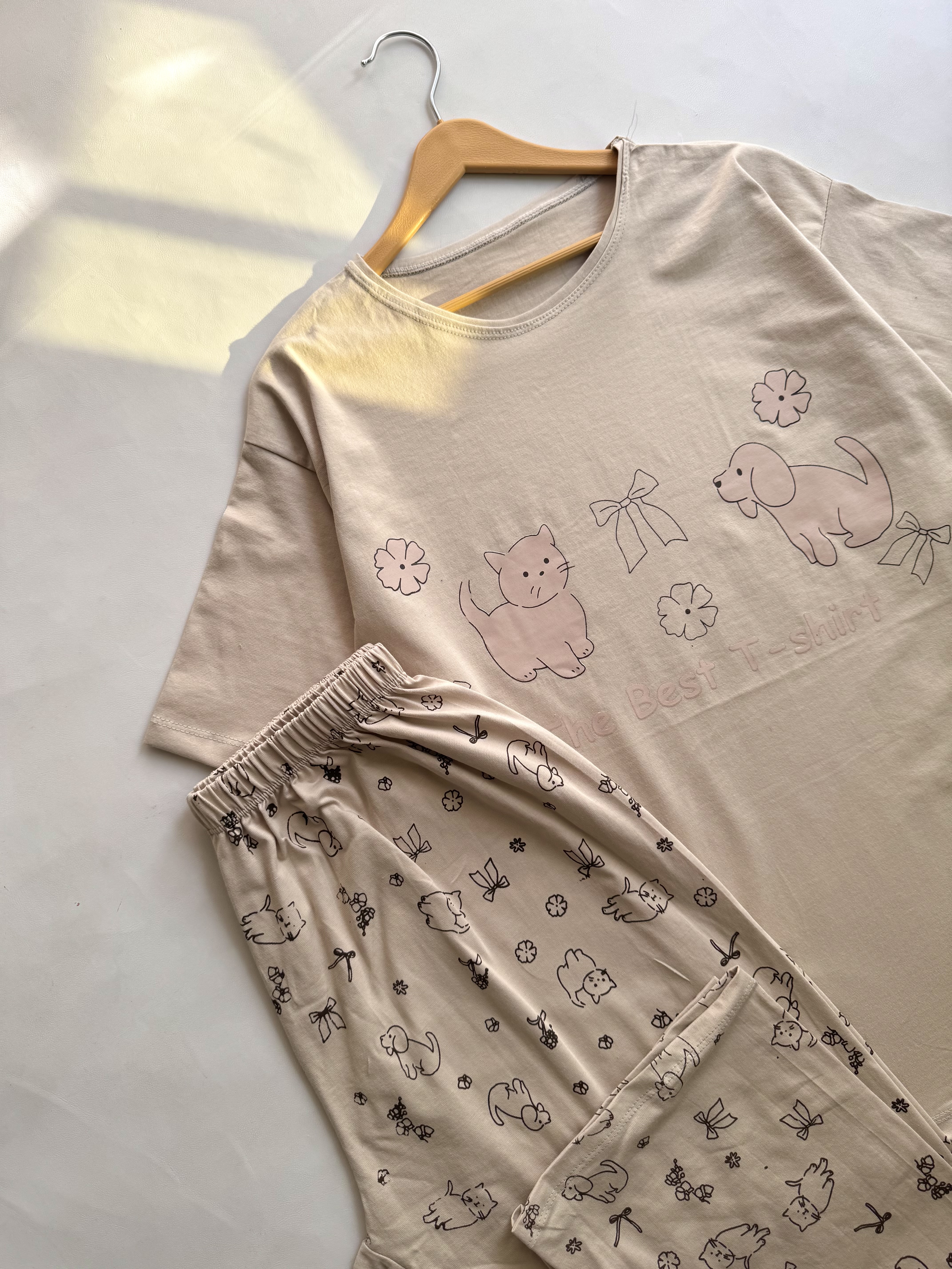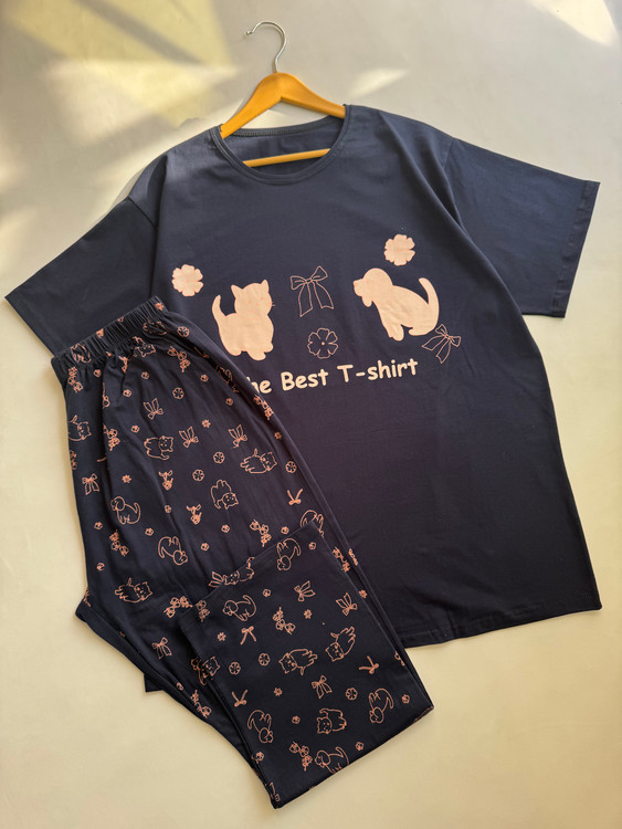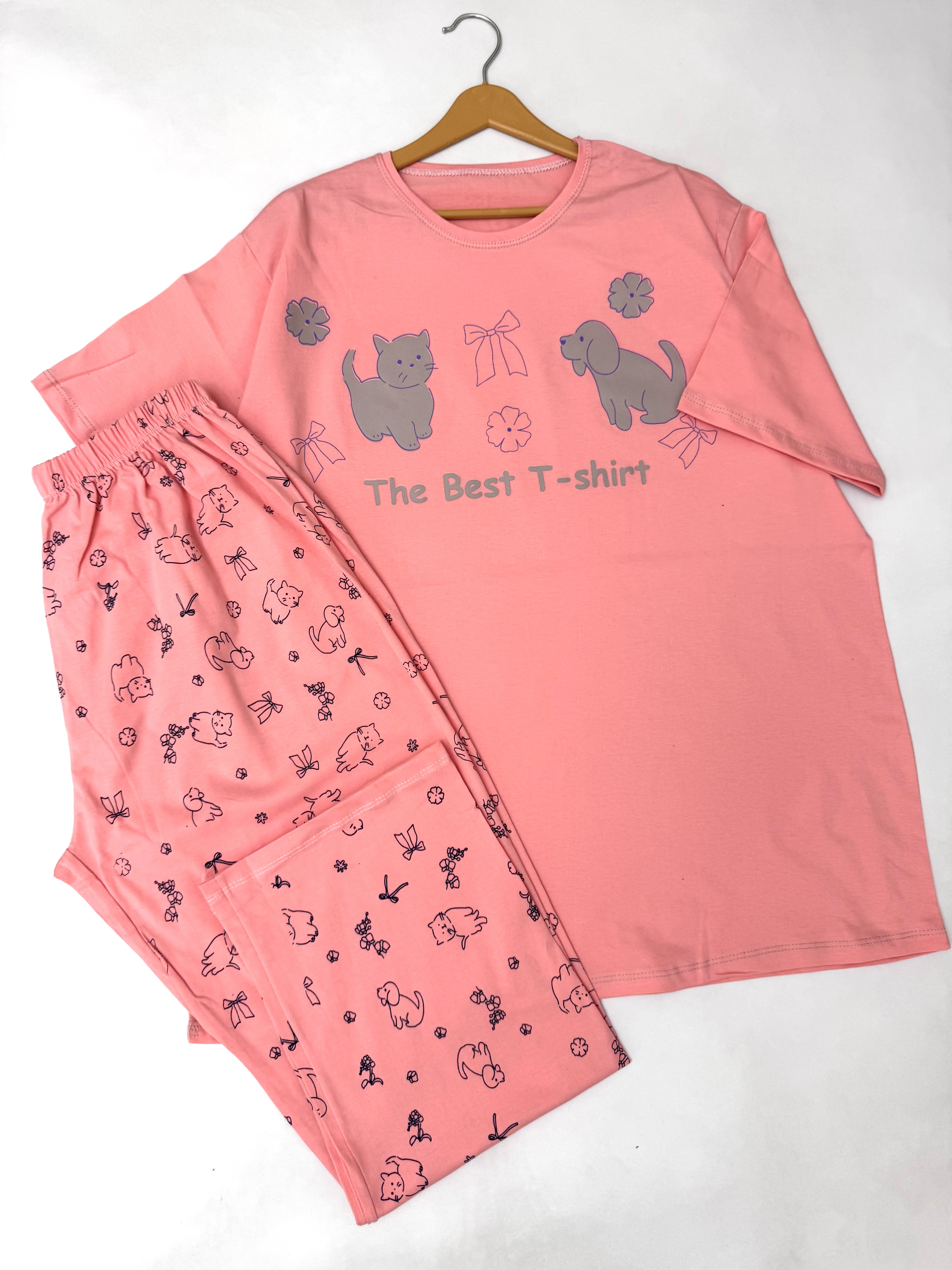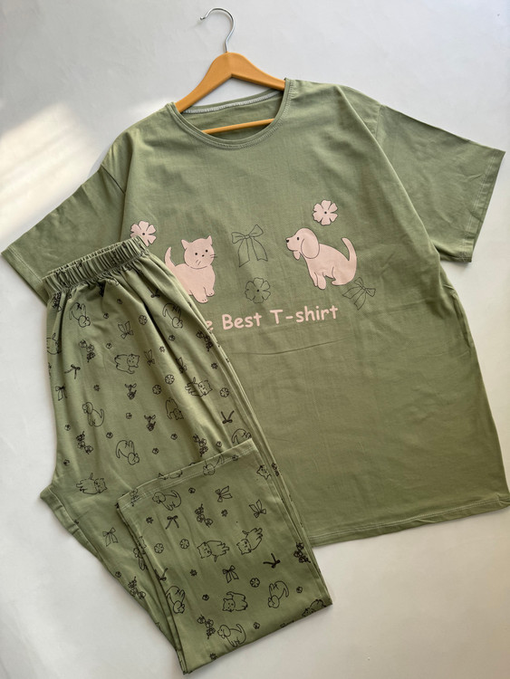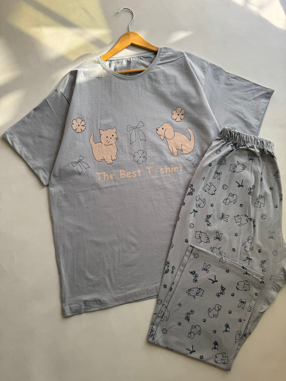 ست تیشرت شلوار سایزبزرگ ( گربه و سگ)