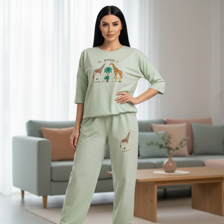ست تیشرت شلوار سایزبزرگ (زرافه)